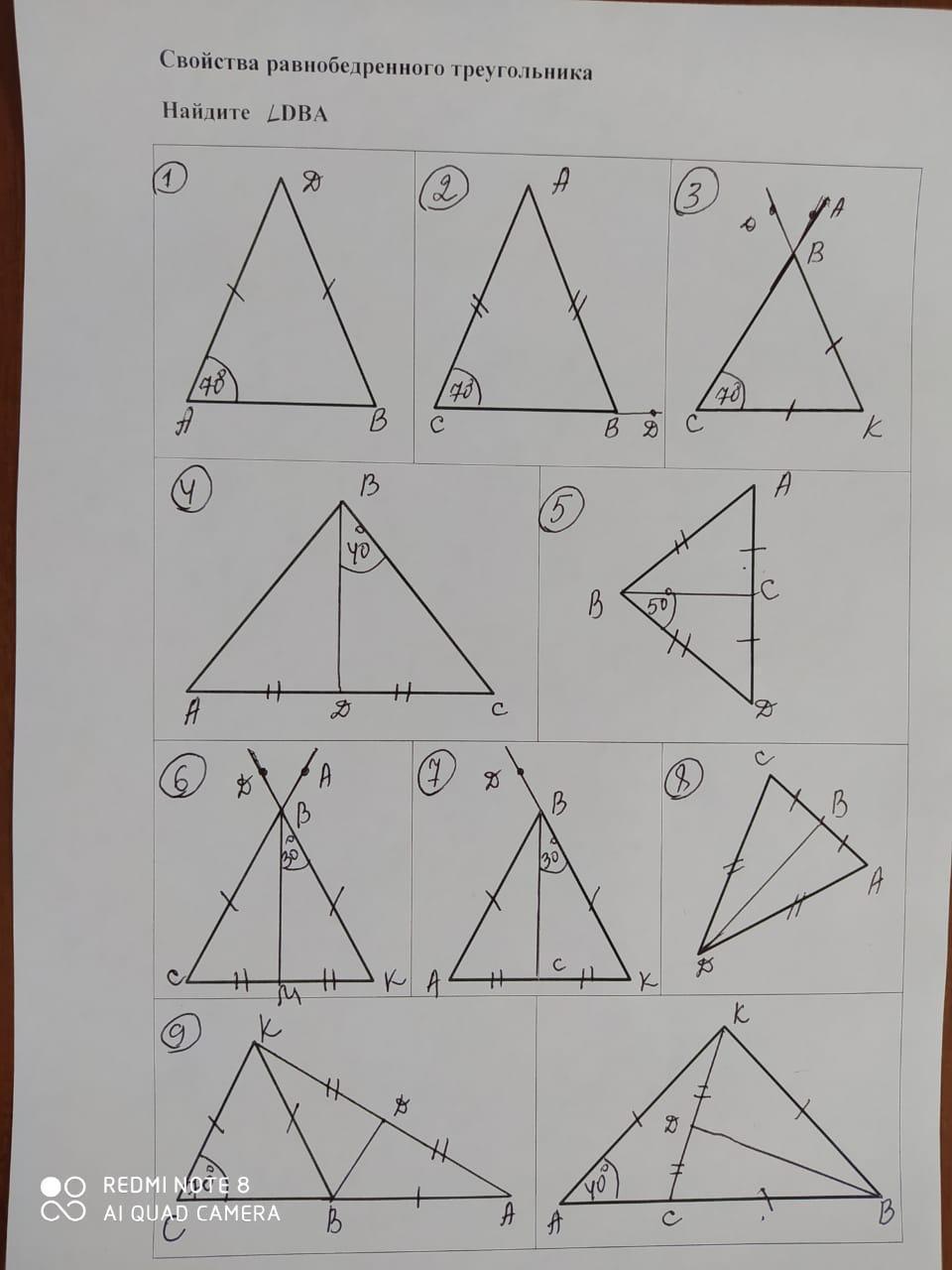 угол DBA = 70 градусов так как в р/б треугольнике угля при оснавании равны.