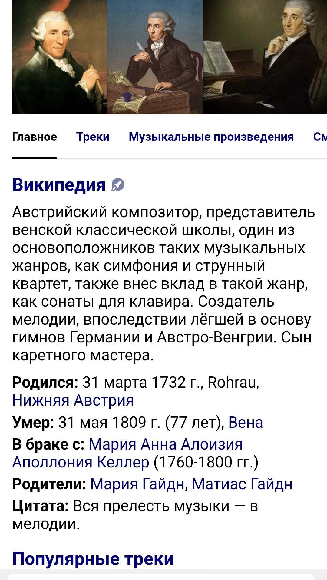 Краткая биография Йозефа Гайдна. Гайдн Франц Йозеф (1732—1809), австрийский композитор. Родился, вероятно, 31 марта 1732 г. (крещён 1 апреля 1732 г.) в деревне Рорау (Нижняя Австрия). В шестилетнем возрасте Гайдн был отдан в школу в Хайнбурге, где обучался игре на различных музыкальных инструментах и пению.