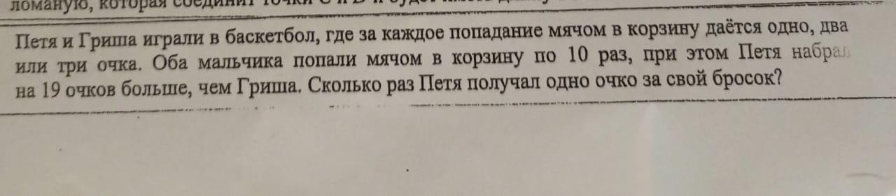 Петя забил 9 мячей по 1 очку и 1 бросок двухочковый. Следовательно ни разу не забив 3 вроде так