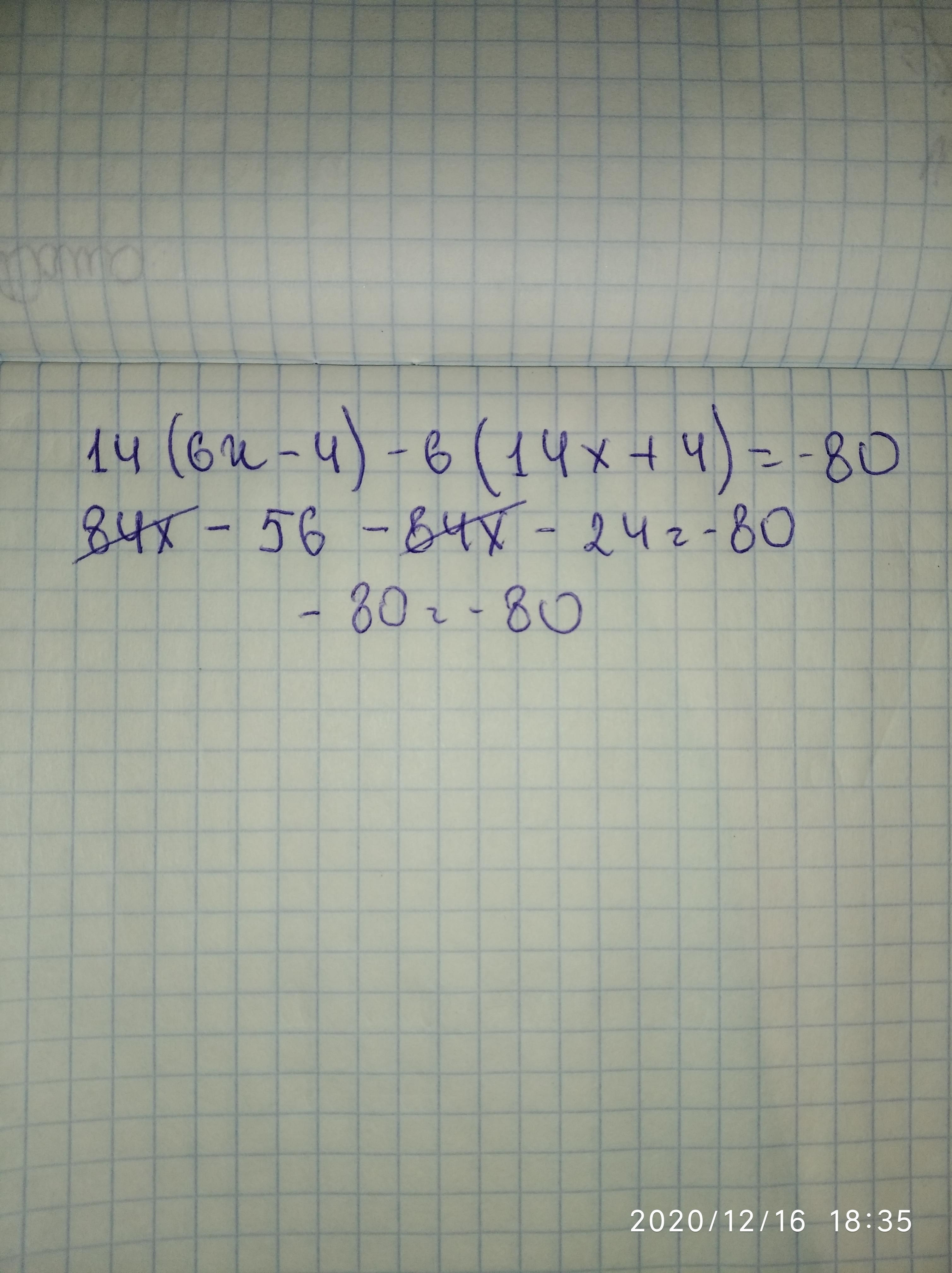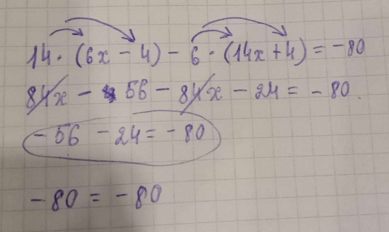 14⋅(6x−4)−6⋅(14x+4)=−80.