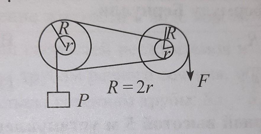 Система, изображенная на рисунке, находится в состоянии равновесия. Какой части R равна сила F?