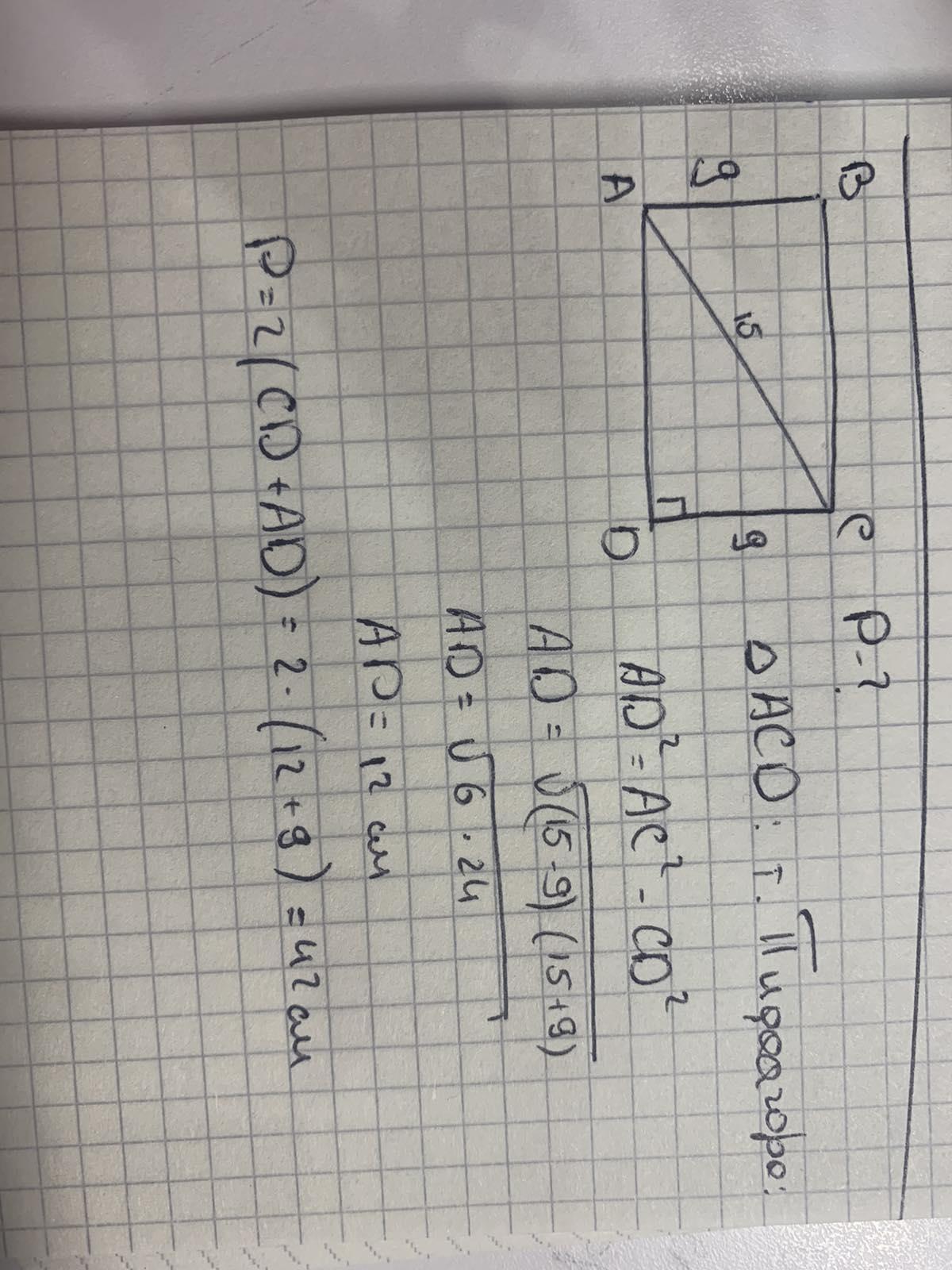 ДАМ 25 БАЛЛОВ ПОМОГИТЕ ПОЖАЛУЙСТА Найдите периметр прямоугольника, если его диагональ равна 15 см, а одна из сторон 9 см.ПОЖАЛУЙСТА МОЖНО С РИСУНКОМ