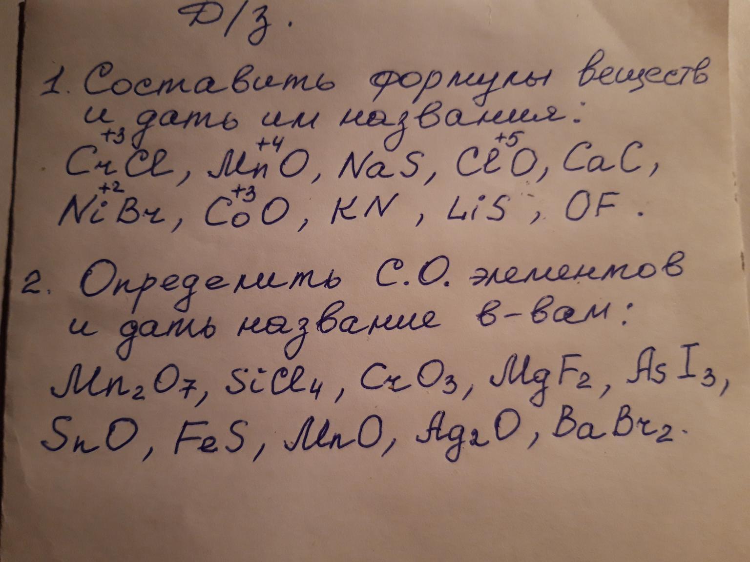 2.Определить С.О.(степень окисления) элементов и дать им названия