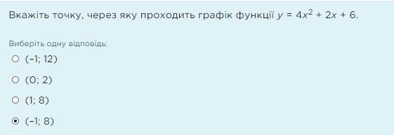 Вкажіть точку, через яку проходить графік функції у = 4х2 + 2х + 6.