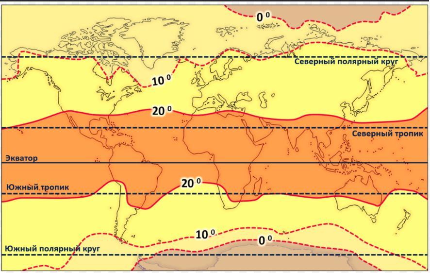 Как видно из карт изотерм тепловых поясов, которая дана ниже в приложении, умеренные тепловые пояса ограничиваются с юга изотермой +20°, а с севера +10° (в Северном полушарии.В Южном-наоборот).