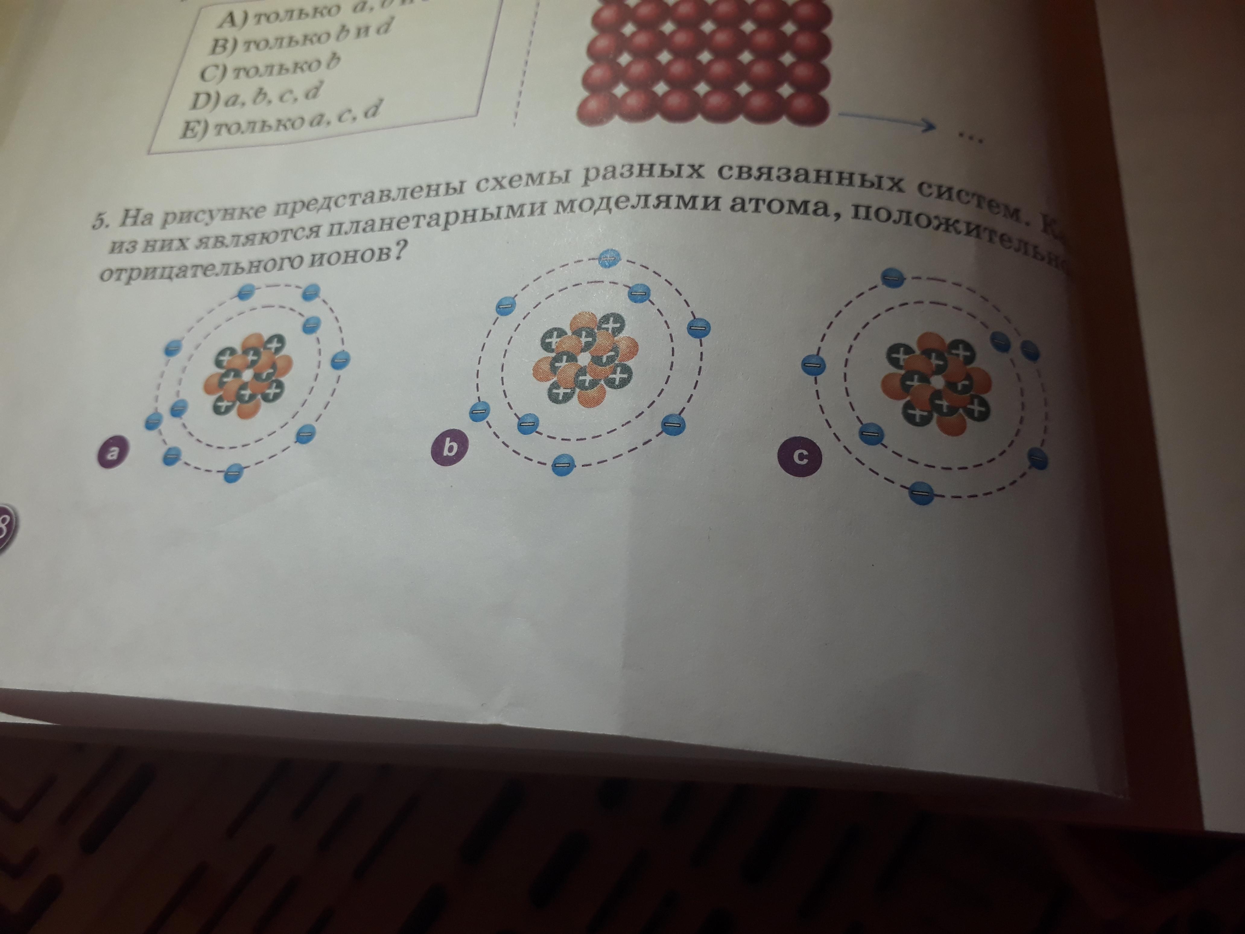 На рисунке представлены схемы разных связанных систем.Какие из них являются планетарными моделями атома,положительного и отрицательного ионов