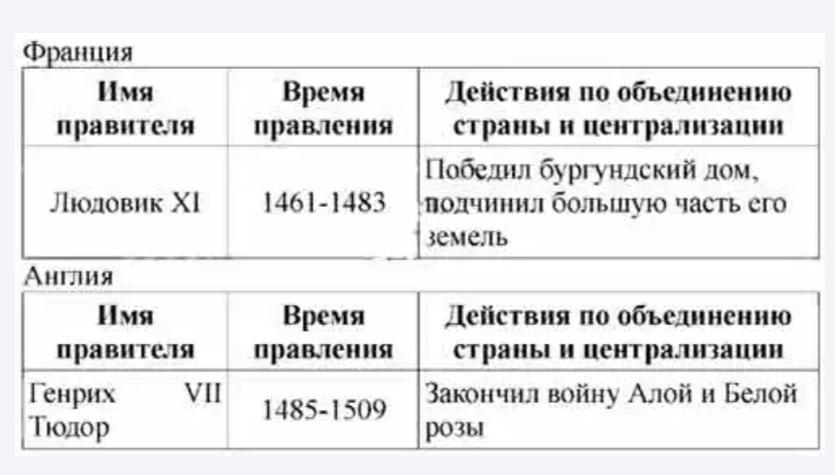 Ответ: 1)Во время войны знатные феодалы во Франции захватили много земель из владений короля, желая вернуть страну к феодальной раздробленности.А в Англии, которая проиграла Столетнюю войну, там просто началась междоусобная война между 2-мя династиями спорившими за власть.