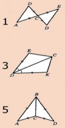 1. Треугольники АДС и СДЕ равны по 1 признаку (две стороны и угол между ними),т.к. углы ДСЕ и ЕСД вертикальны(значит и равны)
