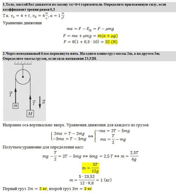 2.Через неподвижный блок перекинута нить. На одном конце груз массы 2m, а на другом Зm. Определите массы грузов, если сила натяжения 23,52Н.