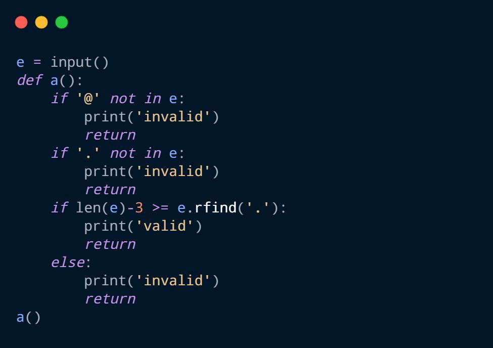 Задано строку, содержащую электронный адрес пользователя. Убедиться, что этот адрес является корректным (наличие символа @ и точки, а также наличие по крайней мере двух символов после последней точки)