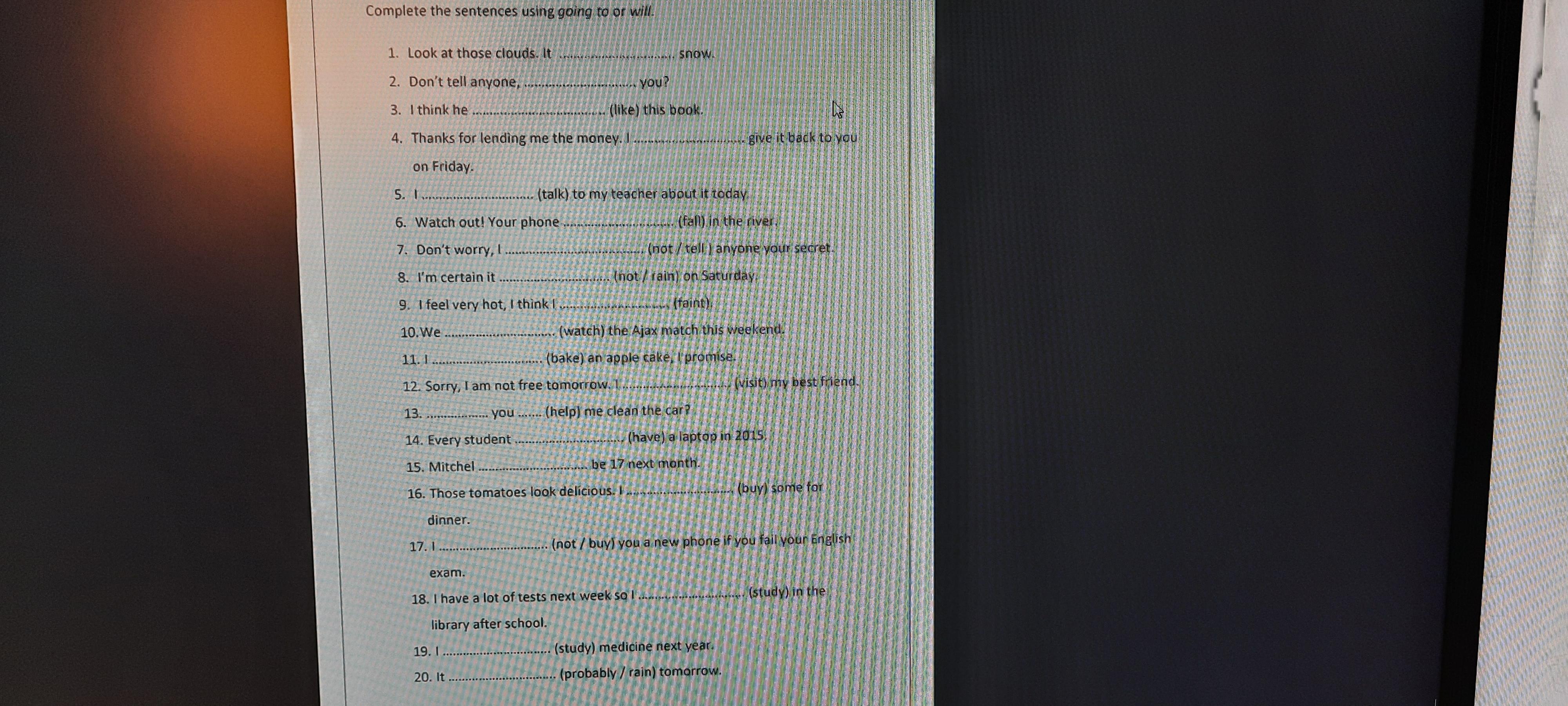 19) I will study (это простой факт о будущем)