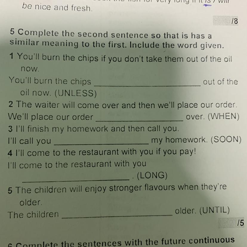 Сделать второе предложение аналогично первому (as long as, unless, until, as soon as)