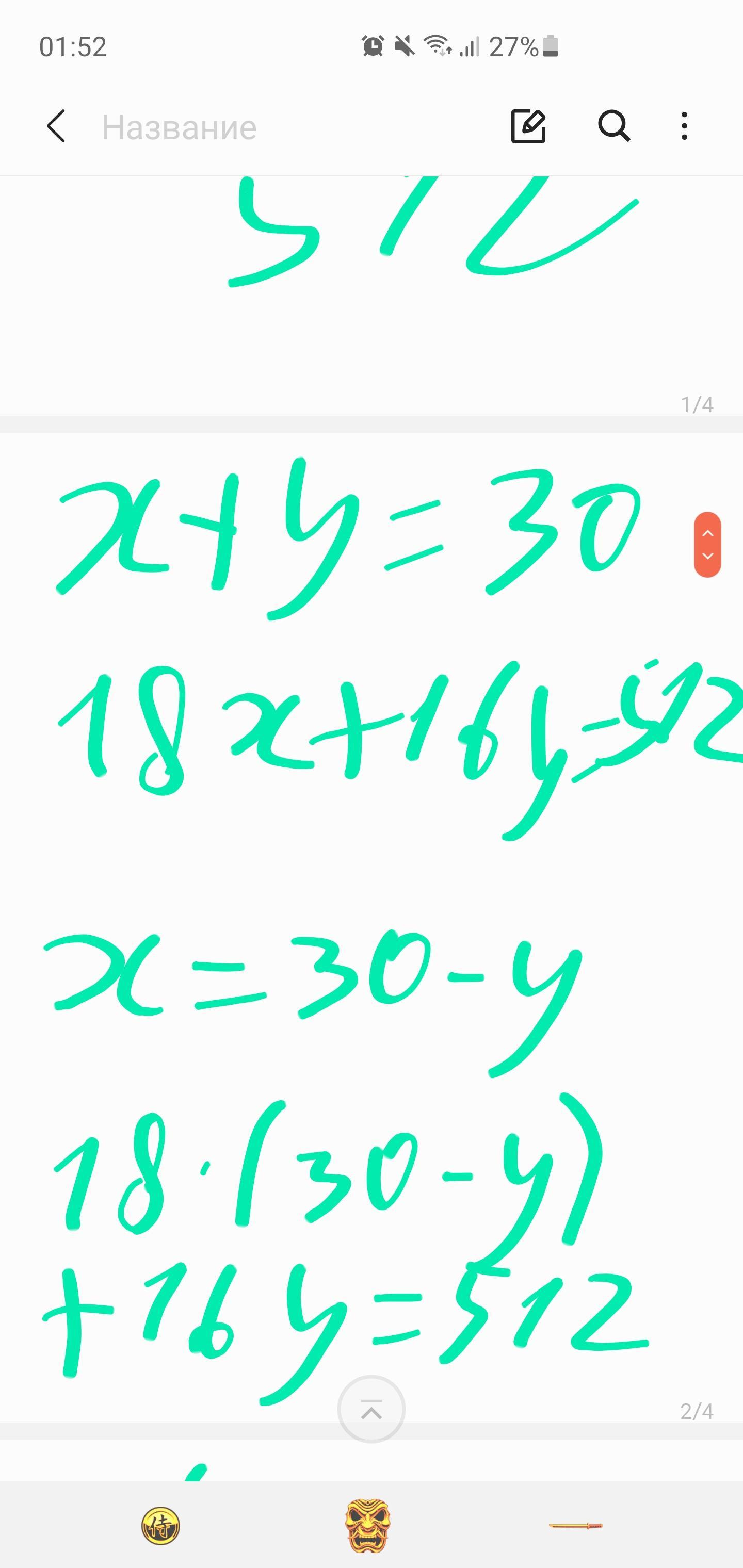 (2) 18*х+16у=512 - всего оплачено 512 крон за некое кол-во метров одной ткани и второй при этом мы знаем сколько стоит 1 м одной и второй ткани.