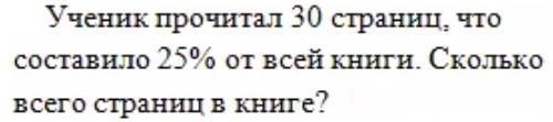 помогите решить задачу. Ученик прочитал 30 страниц, что составило 25% от всей книги. Сколько всего страниц?