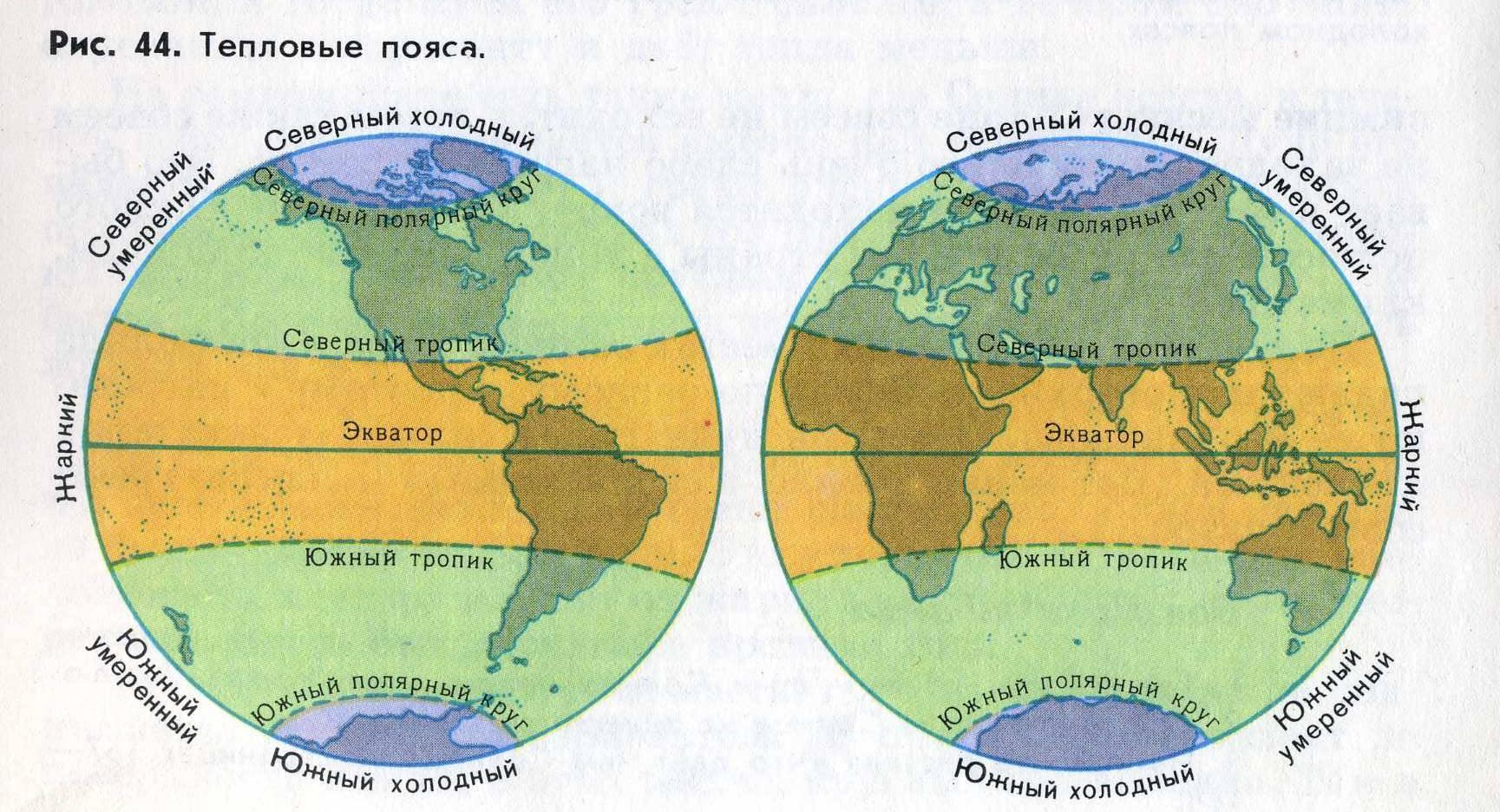 Для этого посмотрим на карту. На ней видно, что тропический (жаркий) пояс освещённости расположен между северным и южным тропиком. Также он расположен между северным умеренным и южным умеренным поясами освещённости.