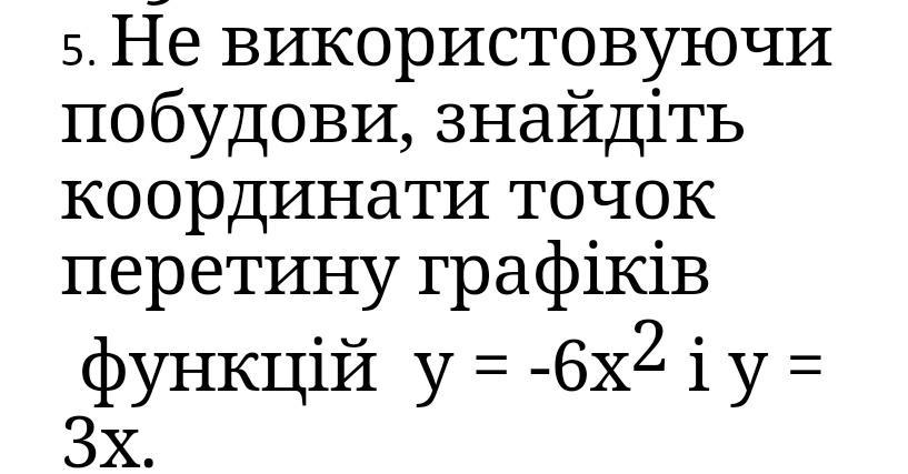 Не використовуючи побудови, знайдіть координати точок перетину графіків функцій у = -6х2 і у = 3х.