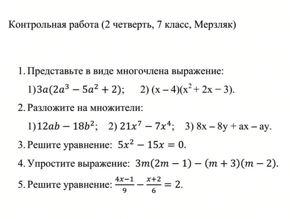 1) 3a(2a³ - 5a² + 2) = 6a⁴ - 15a³ + 6a