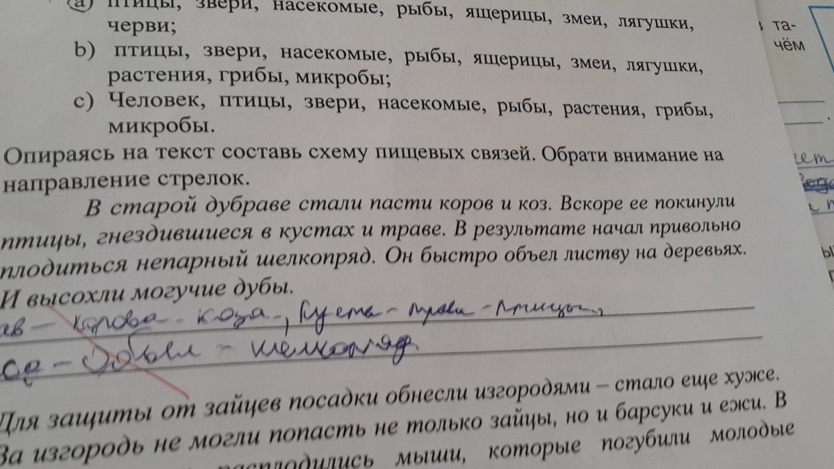 Вообщем коровы и козы съели кусты и травы где гнездились птицы, птицам стало негде жить и они улетели... Птицы питались Шелкопрядами, а из-за отсутствия птиц шелкопряды стали плодиться и поедать листву на деревьях.. поэтому все дубы быстро засохли