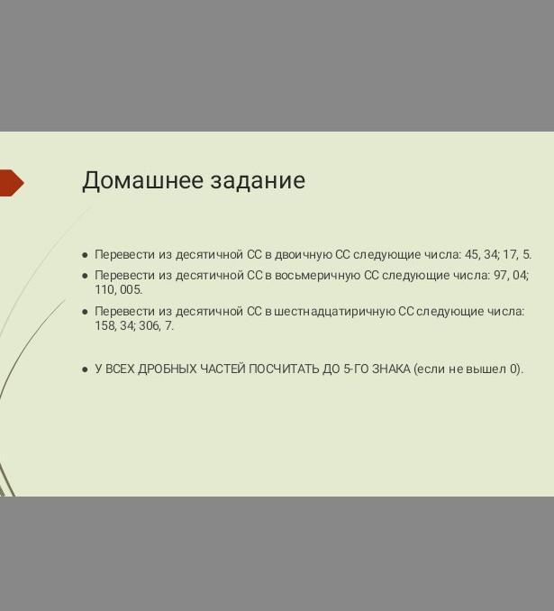 Переводим целую часть 45.34(10) в 2-ую систему последовательным делением на 2: