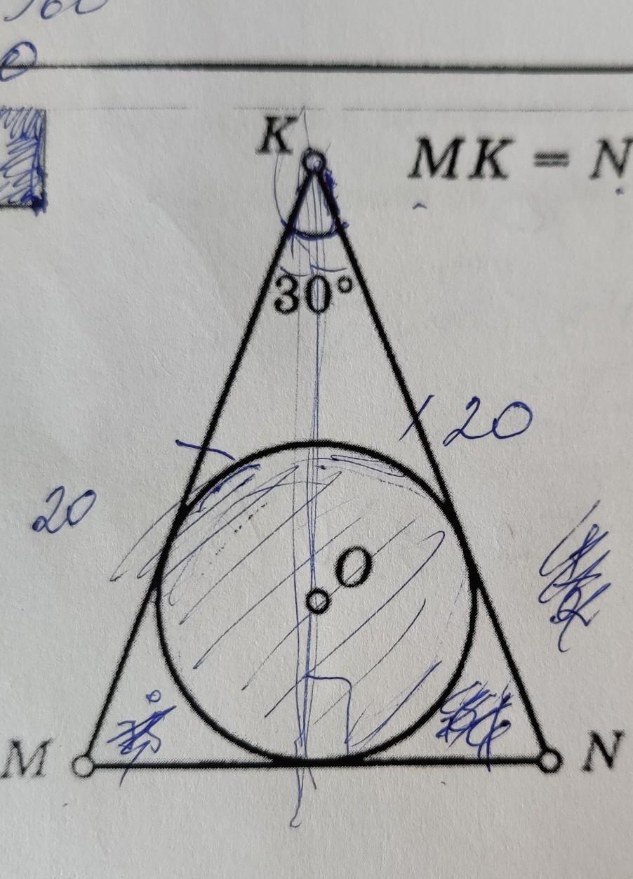∆MKN - равнобедренный, ⇒углы при МN=(180°-30°)/2=75°
