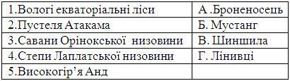 Встановіть відповідність між тваринами та природними комплексами у яких вони мешкають.