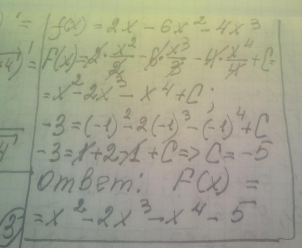 Знайдіть для функції f(x) = 2x − 6x^2 − 4x^3 первісну, графік якої