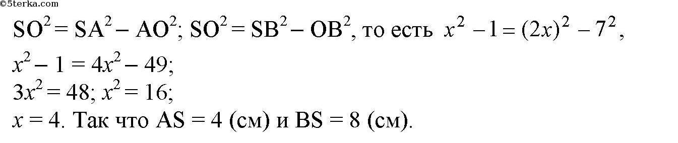 2) Обозначим AS = х, тогда AS : SB = 1 : 2, то SB = 2x. SO — перпендикуляр. В прямоугольных треугольниках AOS и BOS имеем: