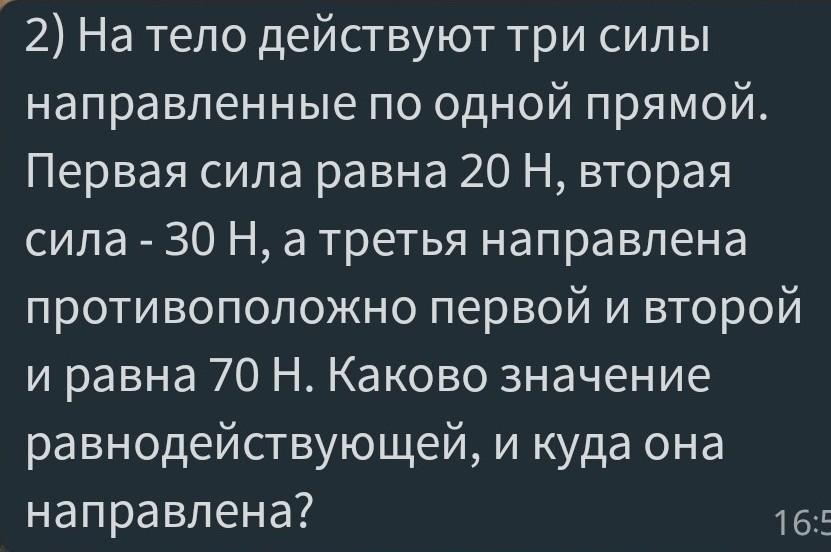 20 Н, направлена туда же, куда и сила равная 70 Н