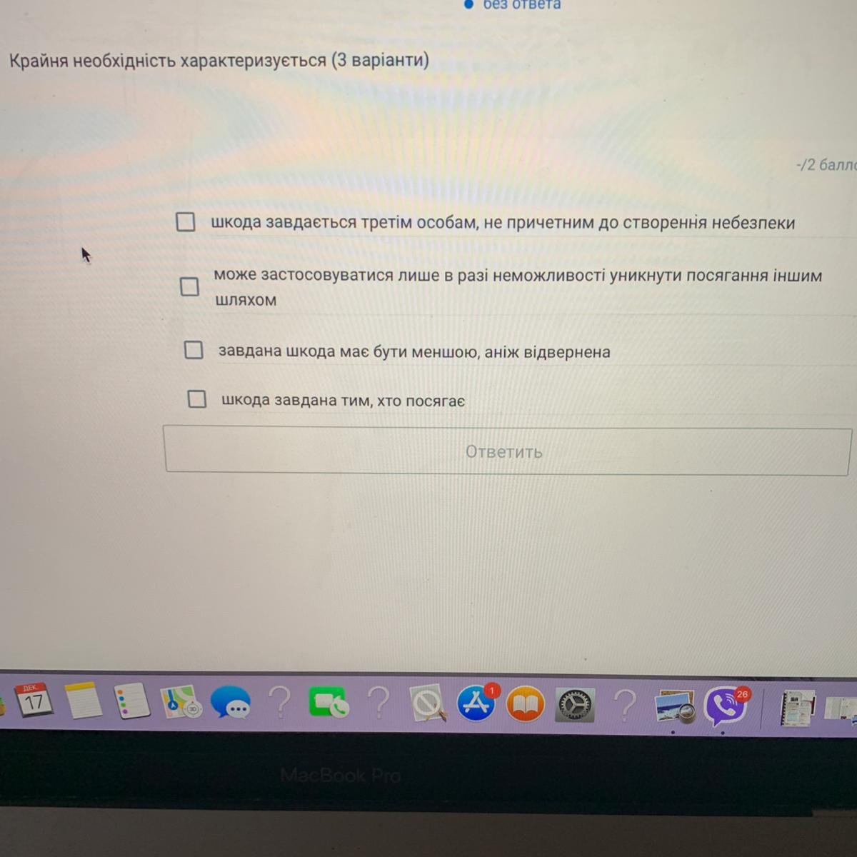 обираєте всі варіанти, крім "шкоду завдано тим, хто посягає"