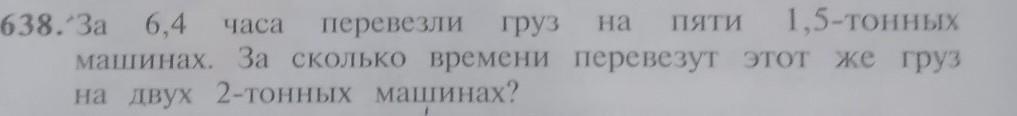 старшая 6,4 привезли 1,5 т в машинах За сколько времени привезут этот же груз на двух 2- тоннвх машинах