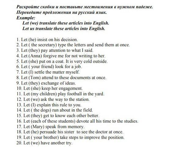him, the secretary, them, Anna, her, your friend, me, Tom, them, her, mine children, us, me, the dogs, them, them(each of these students), Mary, him, your brother, us