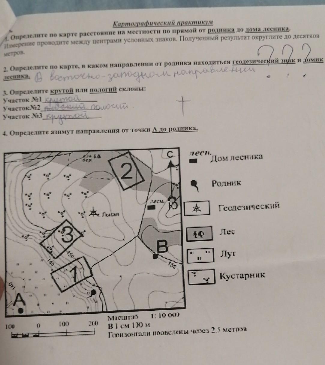 1. Измеряй линейкой, от дома лесника до родника и все, дальше то что получилось умножай на 130м, то есть сантиметры с линейки на 130 это и получится расстояние .