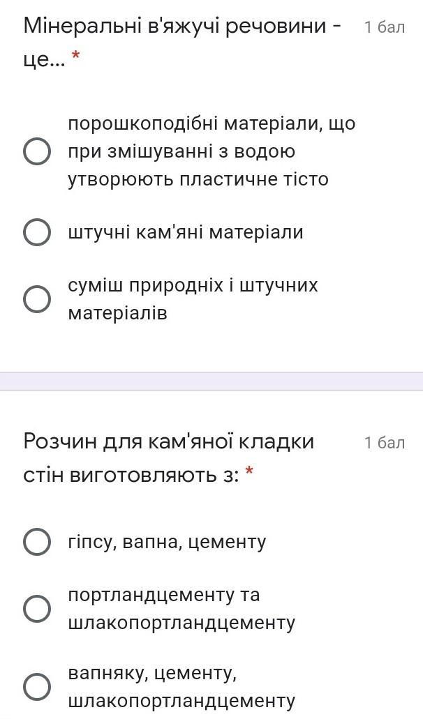Мінеральними в'язівниками називають дрібно змелені речовини з водой