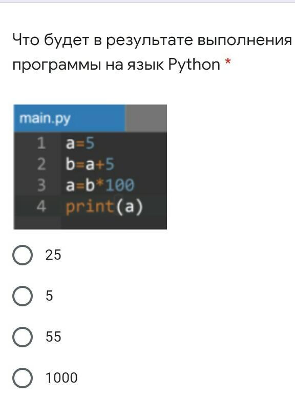 так как а=5 , потом б =5+5=10 , после чего а=10*100=1000