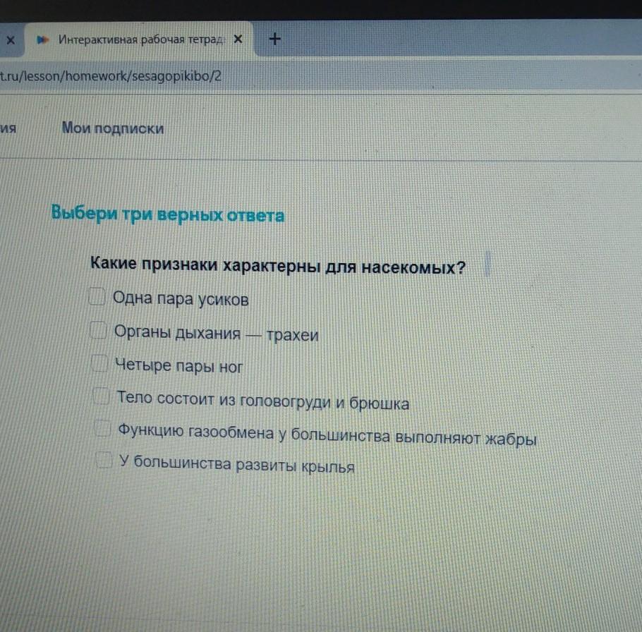 Ответ: одна пара усиков, органы дыхания - трахея, у большинства развиты крылья