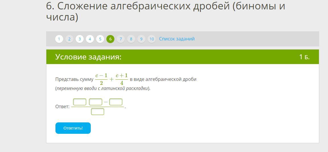 Представь сумму c−12+c+14 в виде алгебраической дроби