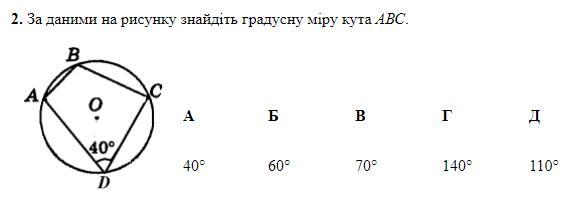 Раз угол АДС=40 град, то дуга АВС=80°, тогда дуга АДС=360-80=280°, а на эту дугу опирается угол АВС, значит он равен 280:2=140°