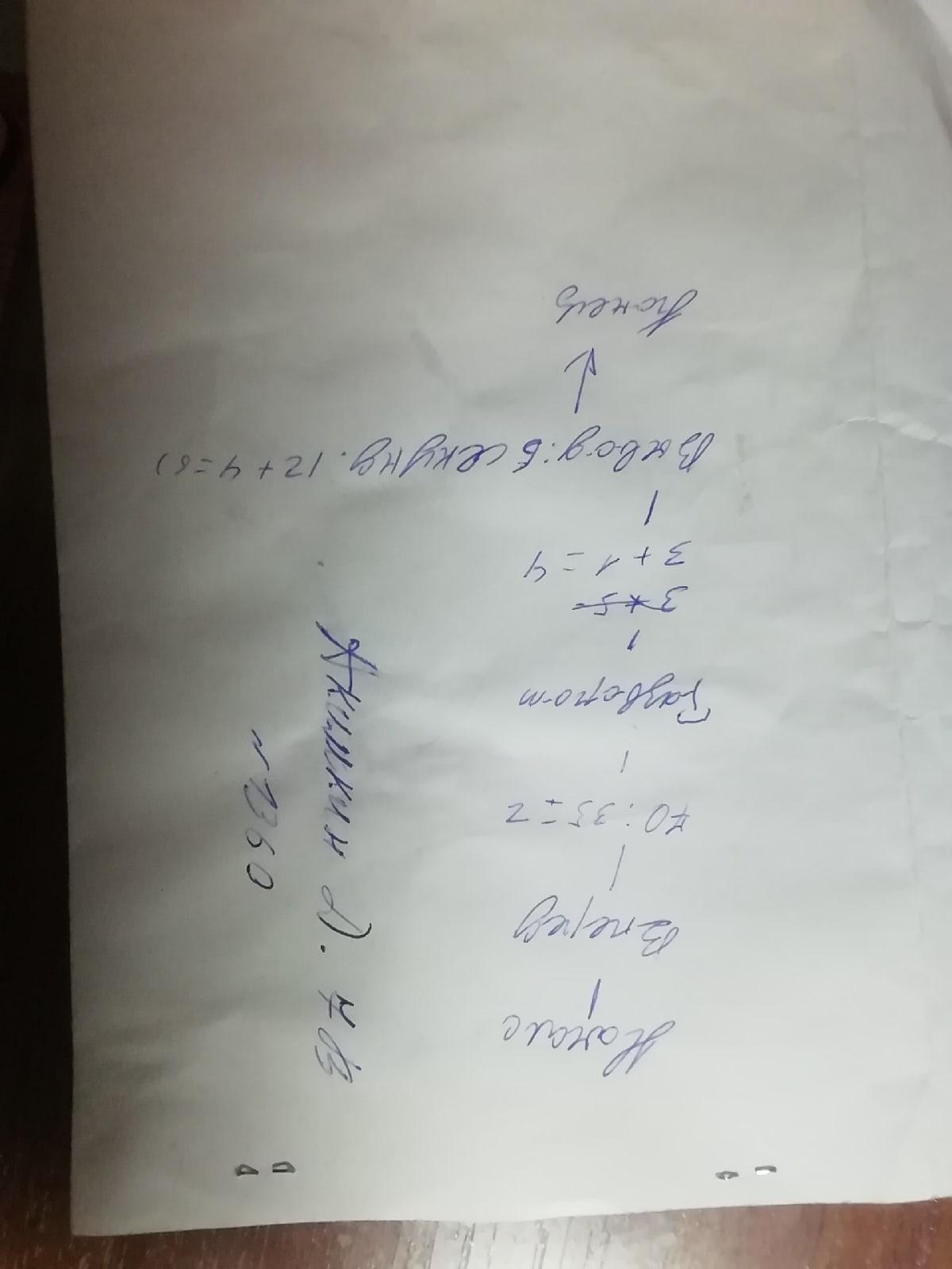 Задача: Робот состоит из 3-х моторов. Два мотора используются для привода колёс. Третий мотор используют как привод исполнительного механизма. Робот находится на расстоянии 70см от изделия. Записать программу для процесса: Робот подъезжает к изделию, использует исполнительный механизм и возвращается в первоначальное положение. Скорость робота составляет 35см в секунду. Время срабатывания исполнительного механизма 3 секунды. Поворот робота на угол 90 градусов происходит за одну секунду. Первоначальное положение робота позволяет ему двигаться прямо по направлению к изделию.