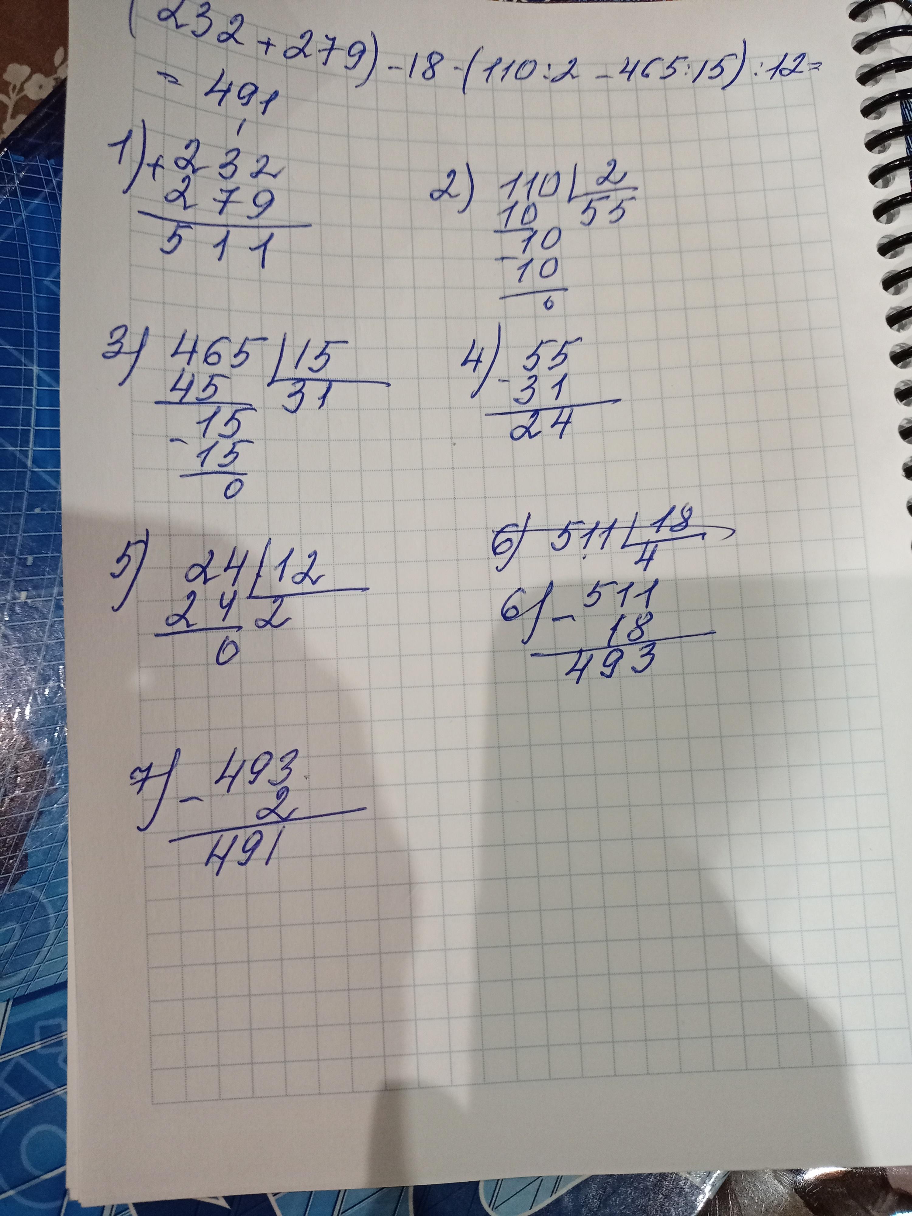 (232 + 279) - 18 - (110:2 - 465:15): 12 пожалуйста