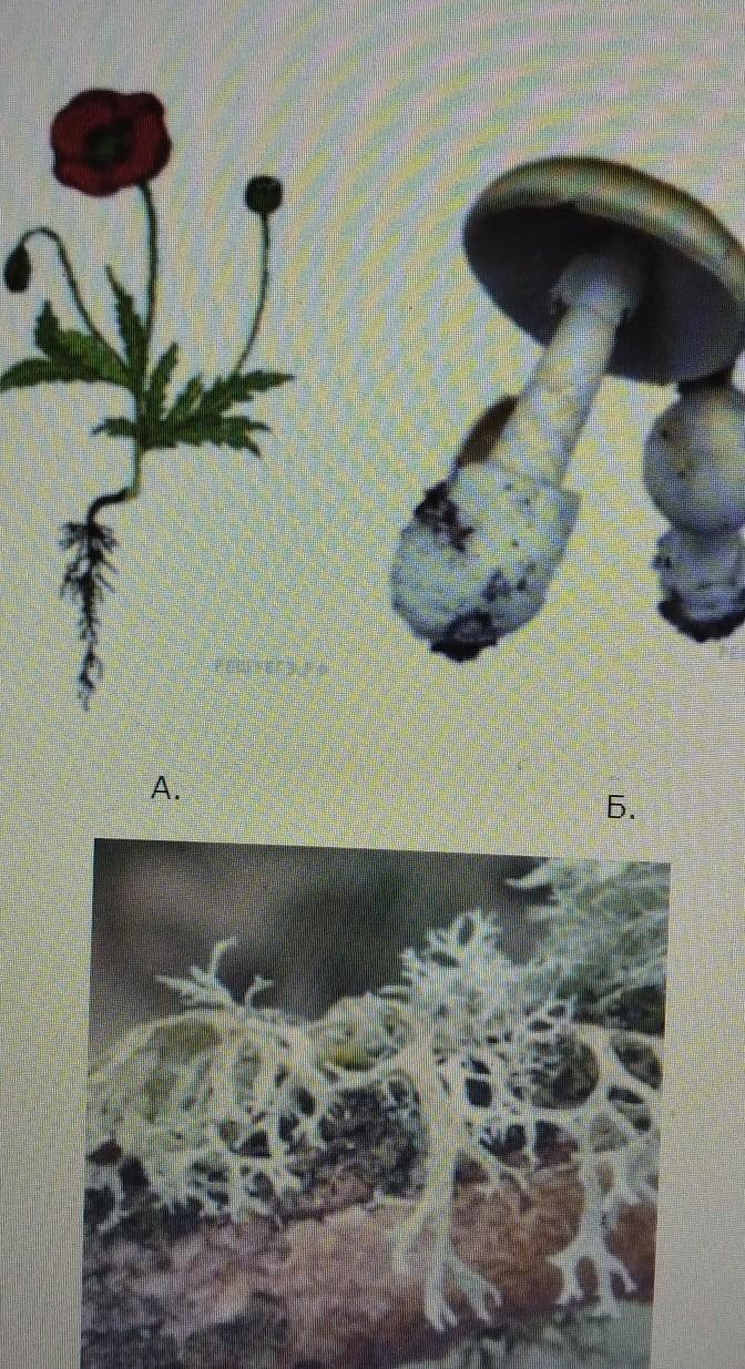 Подпишите их названия, изпользуя слова из предложенного списка: лишайники, грибы, растения.