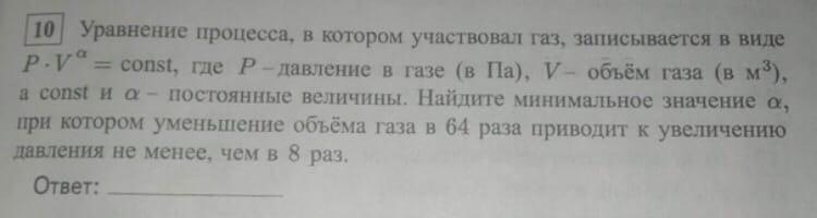 Таким образом, наименьшее значение константы , при котором уменьшение объёма газа в 64 раза приводит к увеличению давления не менее, чем в 8 раз: 0,5.