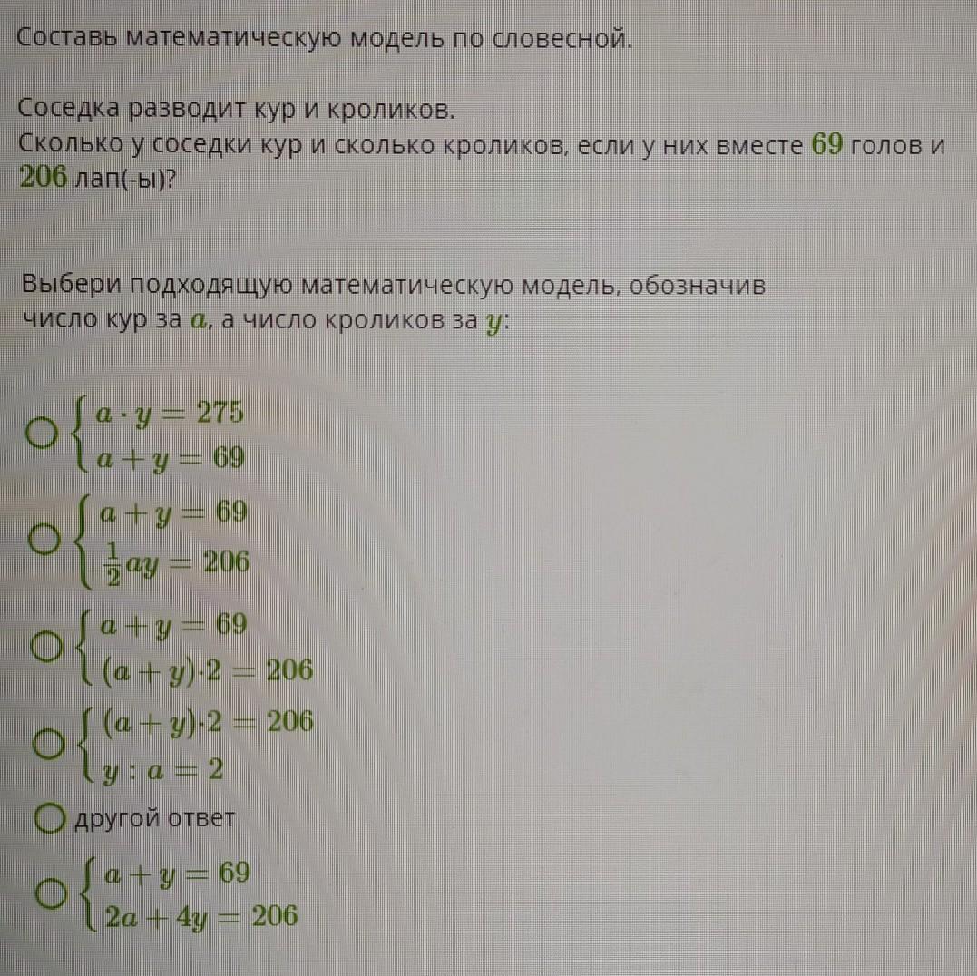 Пусть было а кур и у кроликов, у курицы 2а -лап, 4у лап у кролика .
