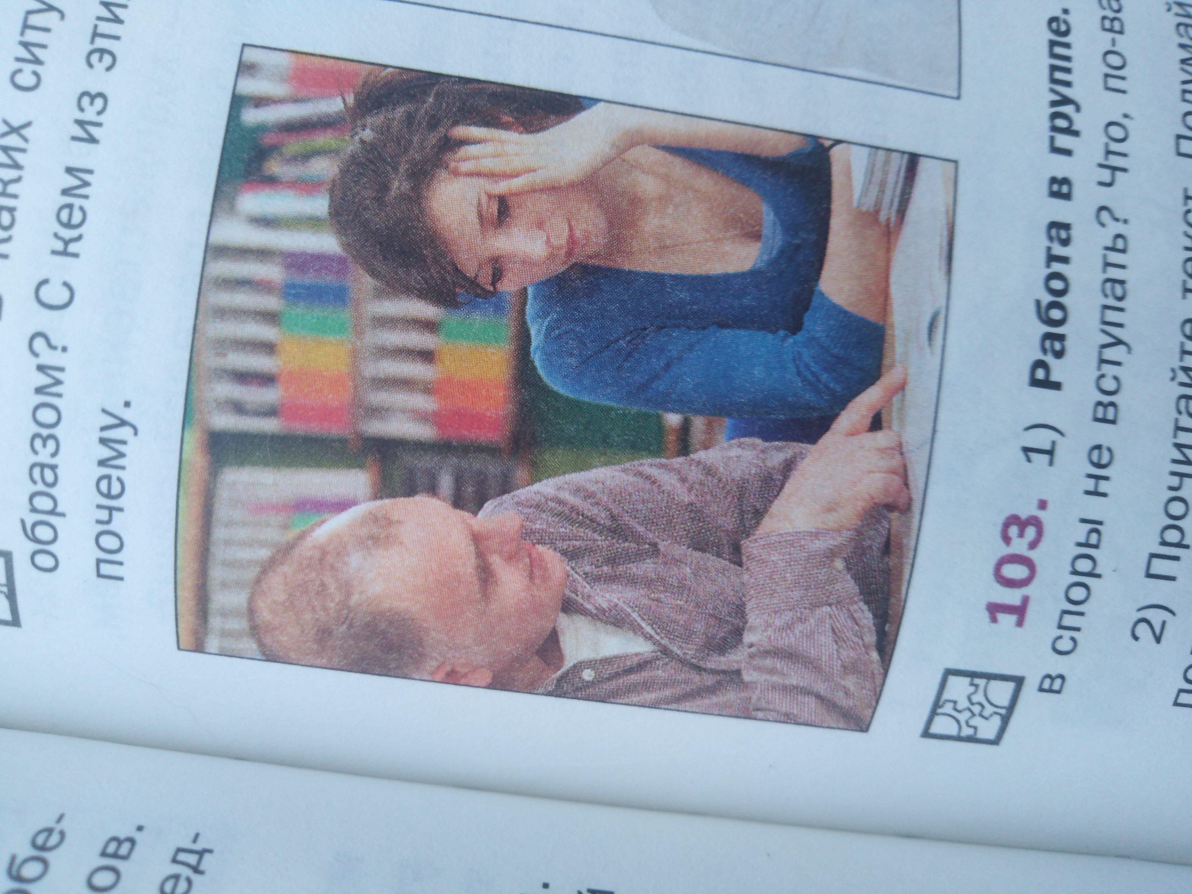 На фотографии видны мужчина и женщина .В синей кофте и с хвостиком. Женщина сидит с задумчивым видом . Видно что она что-то не понимает и прилагает усилия чтобы это понять .Рядом сидит мужчина. В розовой рубашке .Мужчина что-то объясняет . Видно что что-то пытается объяснить этой девушке . Но девушка не понимает , это объясняется тем что она прикусила губу . Но мужчина без принуждения и гнева ей это объясняет