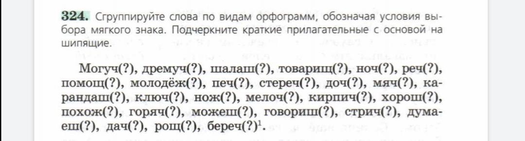 Могуч, дремуч, шалаш, товарищ, ночь, речь, помощь, молодёжь, печь, стеречь, дочь, мяч, карандаш, ключ, нож, мелочь, кирпич, хорош, похож, горяч, можешь, говоришь, стричь, думаешь, дач, рощ, беречь. Орфограмма мягкий знак в конце / его отстутвие, надеюсь выделить основу в прилагательных уже сам сможешь, удачи! ;)