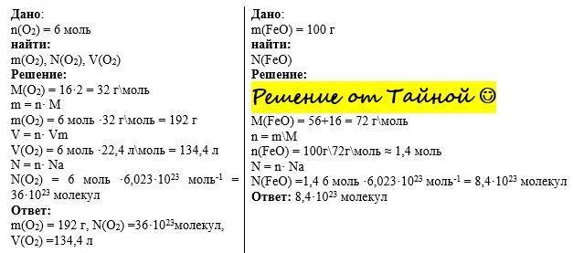 2.Найти число молекул оксида железа (FeO), если его масса составляет 100 грамм.