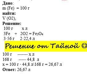 Задача: Найдите объем кислорода, который необходим для сгорания железа массой 100г.