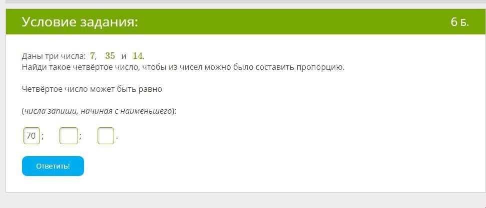 Найди такое четвёртое число, чтобы из чисел можно было составить пропорцию.