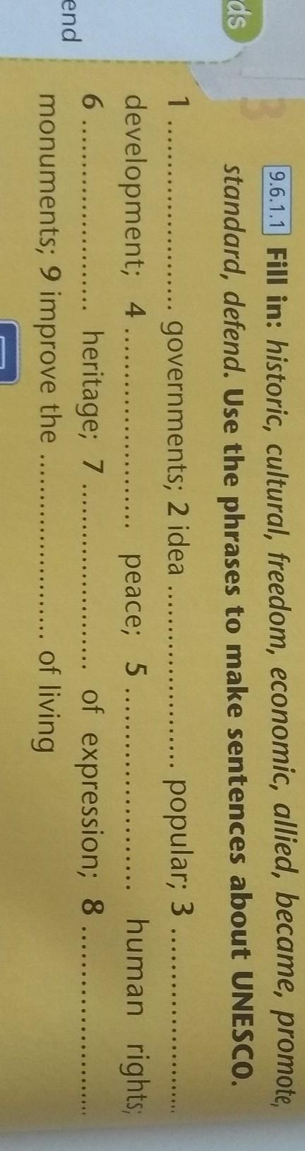 standard, defend. Use the phrases to make sentences about UNESCO.