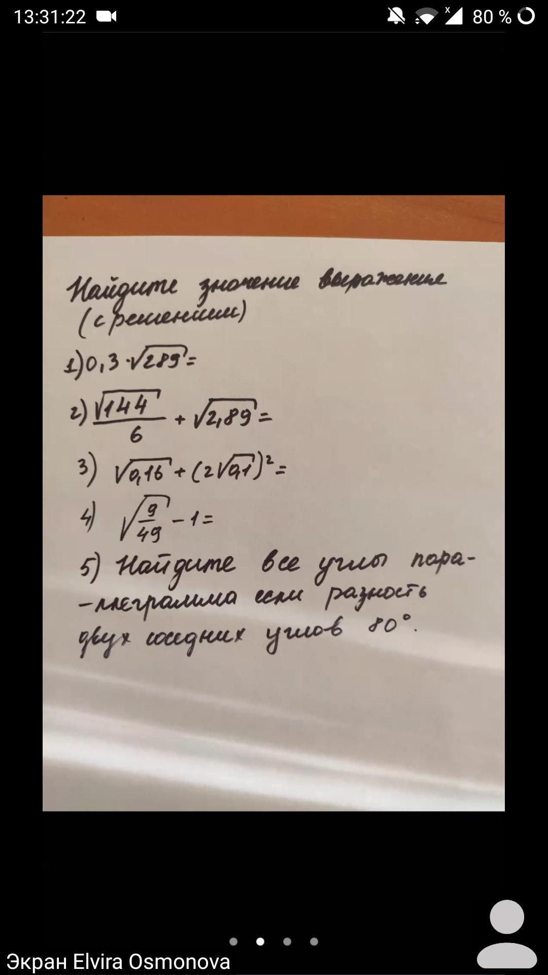 5)Т.к. в параллелограмме противолежащие углы равны, а сумма соседних равна 80°, находим, обозначив углы через x - меньший и через x+80 - больший: