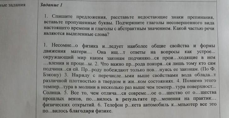 Спишите предложения, расставьте недостающие знаки препинания, вставьте пропущенные буквы. Подчеркните глаголы несовершенного вида настоящего времени и глаголы с абстрактным значением. Какой частью речи являются выделенные слова?